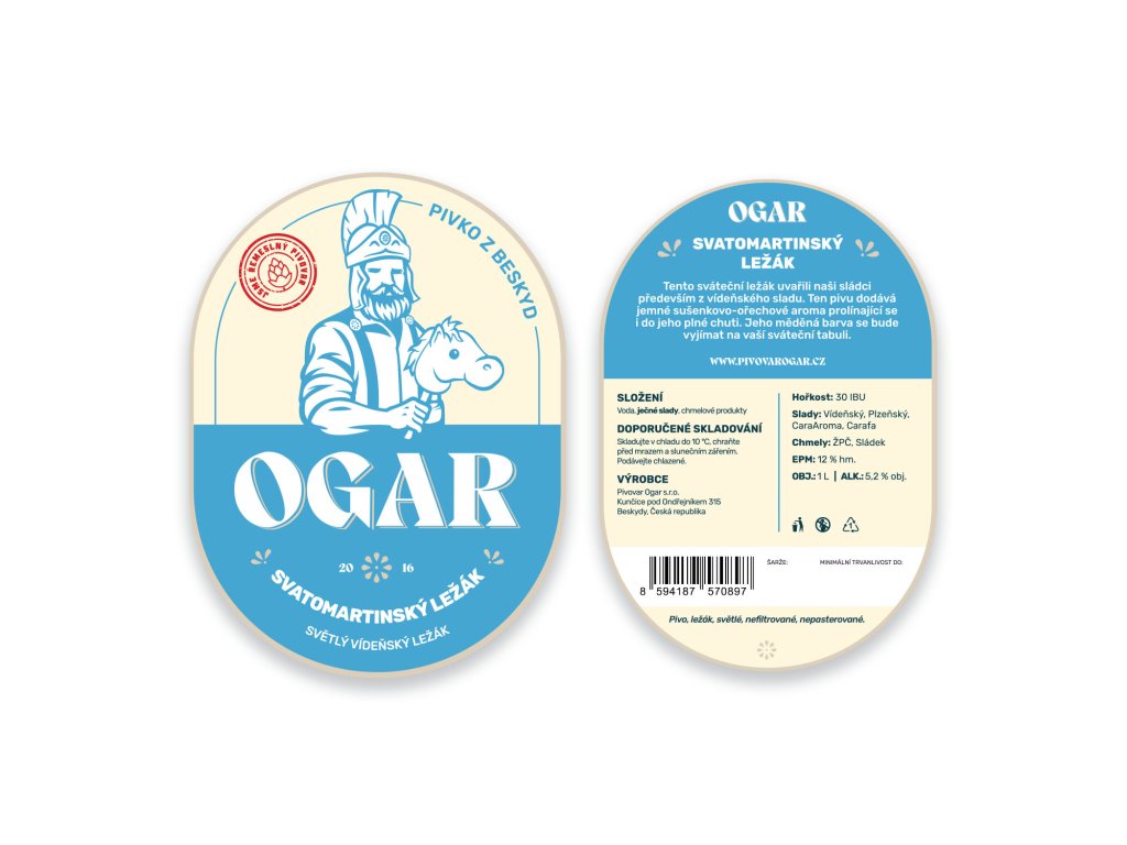 Svatomartinský ležák je uvařen především z vídeňského sladu. Ten pivo dodává jemné sušenko-ořechové aroma prolínající se i do jeho plné chuti. Jeho měděná barva se bude vyjímat na vaší sváteční tabuli.